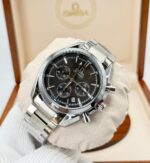 stainless‑steel Omega Seamaster Aqua Terra chronograph with black dial